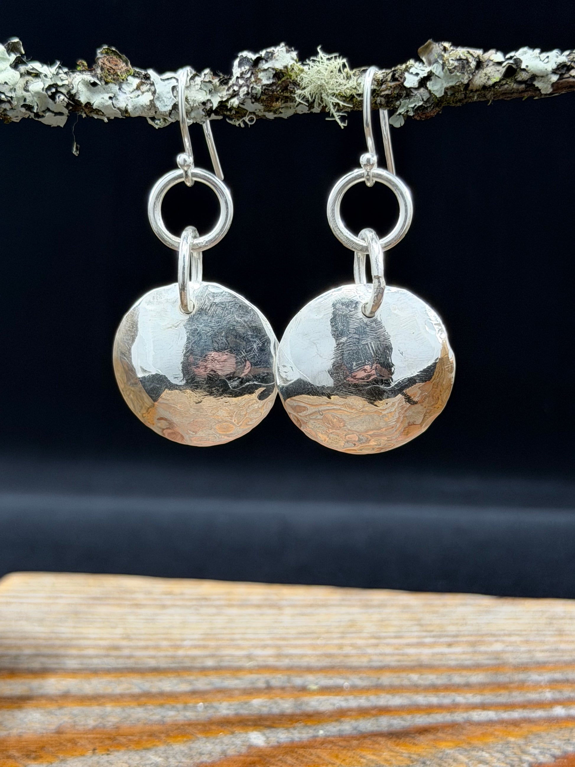 This collection features hammered, full moon shapes and moonstone gemstones. Moonstone is a stone for inner growth, cyclical change and is strongly connected to the feminine.